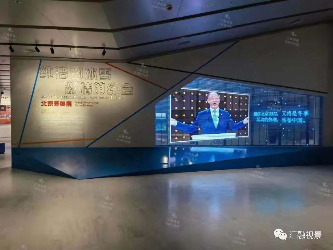冰雪運動體驗區通過環抱式的展示方式、立體式的音箱結構等,環繞式的立體聲效,遠遠超過了普通投影的觀看效果,讓體驗者真正感受到身臨其境的冰雪運動體驗和沉浸感。