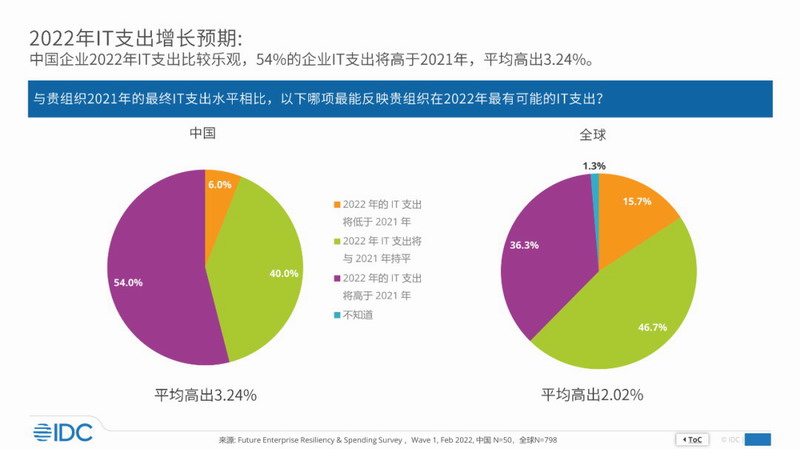 IT技術對業務的發展與創新越來越重要,企業的認知層面越到位,IT投入也將持續增長,這也得益于數字化轉型投資在疫情期間持續支持業務的改善。