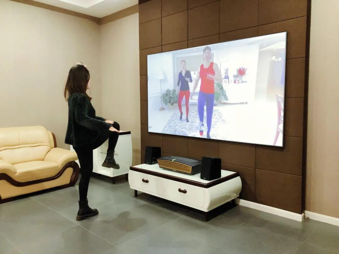 “真激光”電視具備70~120"巨幕大屏, 3~5m視距,避免傳統(tǒng)電視可視距離太遠,高難動作跟不上的尷尬,既有非常好的視覺臨場感,體會與“劉教練”面對面跳操的現(xiàn)場氛圍,又避免了頻繁轉(zhuǎn)動眼球造成的疲倦。搭配MEMC運動補償能有效消除抖動和拖尾,觀看動態(tài)畫面更清晰、順暢。