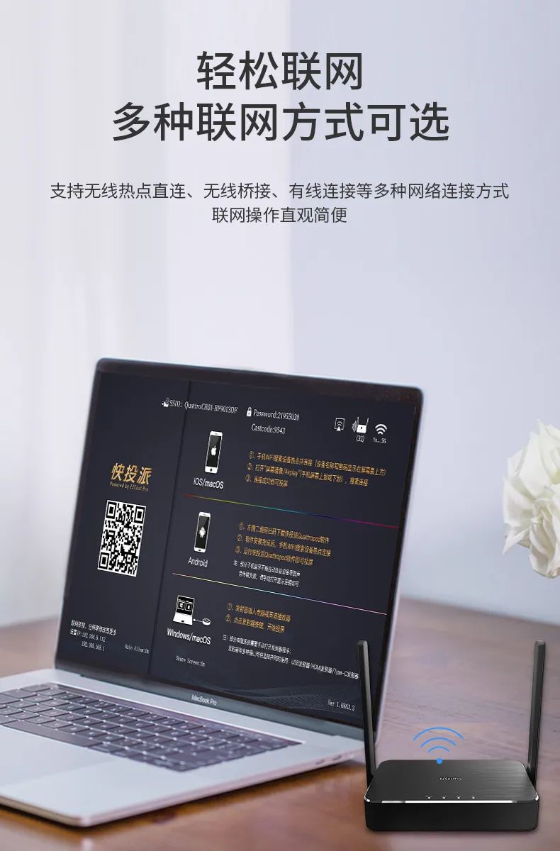 答:其實這里說的必須使用路由器的是類似智能電視里的軟件投屏,而快投派企業(yè)級無線投屏器,自帶熱點無線,即使在沒有路由器WiFi的環(huán)境下也可以使用。