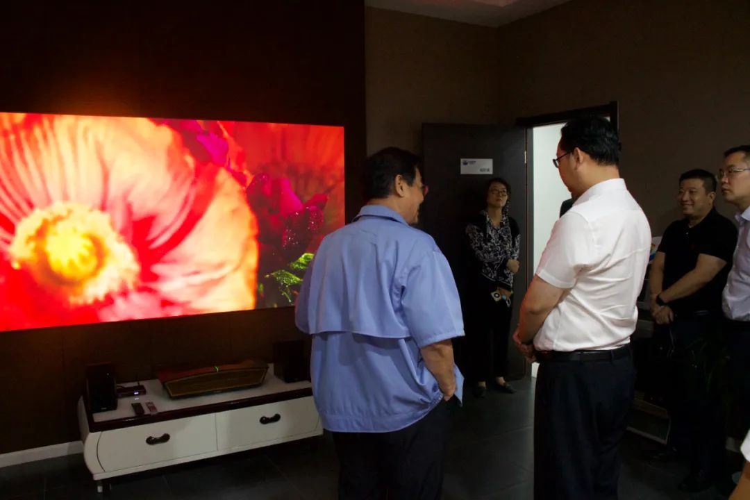 在中科極光視聽室,金書記還近距離觀看了4K真激光電視,就其大色域、高亮度、百寸沉浸式的視覺體驗表示贊賞,并對企業加大力度開展科技創新工作表示肯定,勉勵企業深耕主業、超前謀劃、矢志創新,不斷提高產品創新力、核心競爭力。