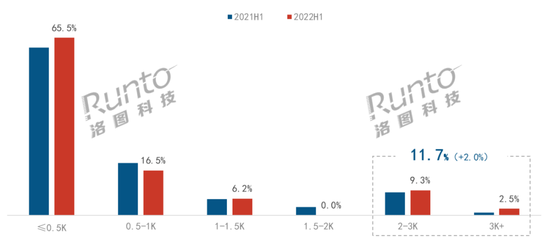 2022H1中國智能投影線上市場亮度結(jié)構(gòu)