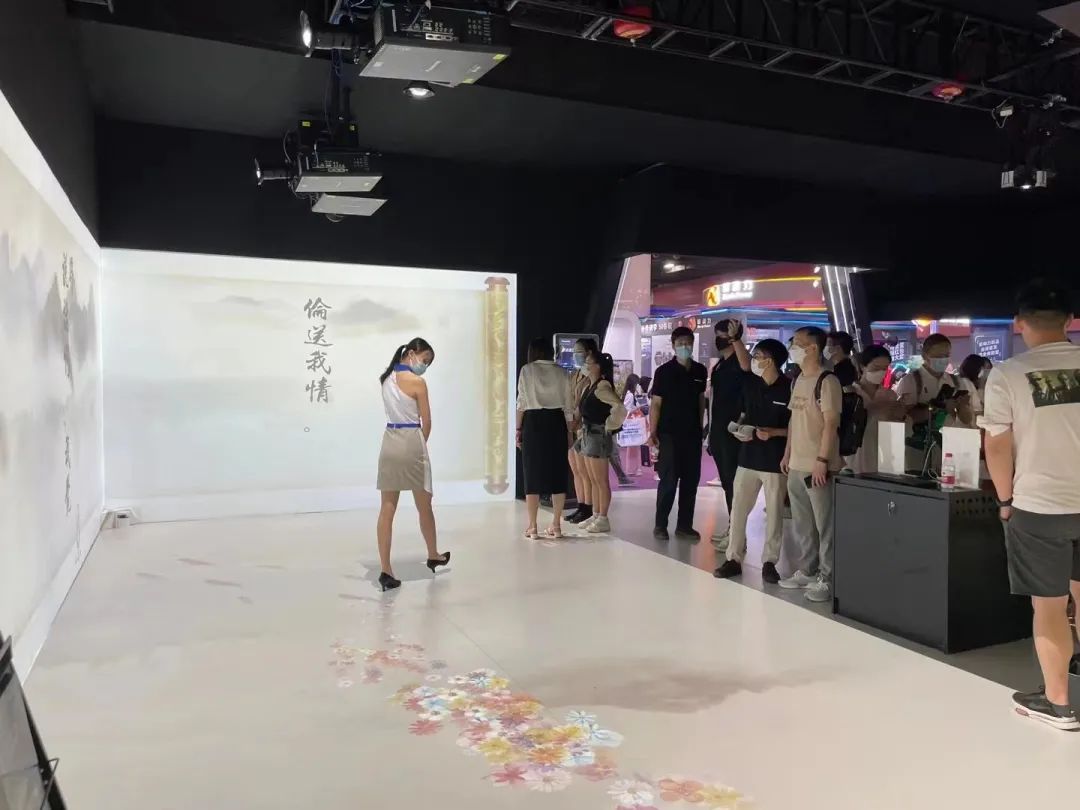 6臺10,000流明的松下PT-FRZ99C工程投影機在墻面和地面上用光影氤氳成一幅素雅的丹青水墨畫。觀眾念出詩詞,聲音采集系統將音頻傳輸至處理器,并在畫面上悠然行筆,一首首膾炙人口的詩句悄然入畫。