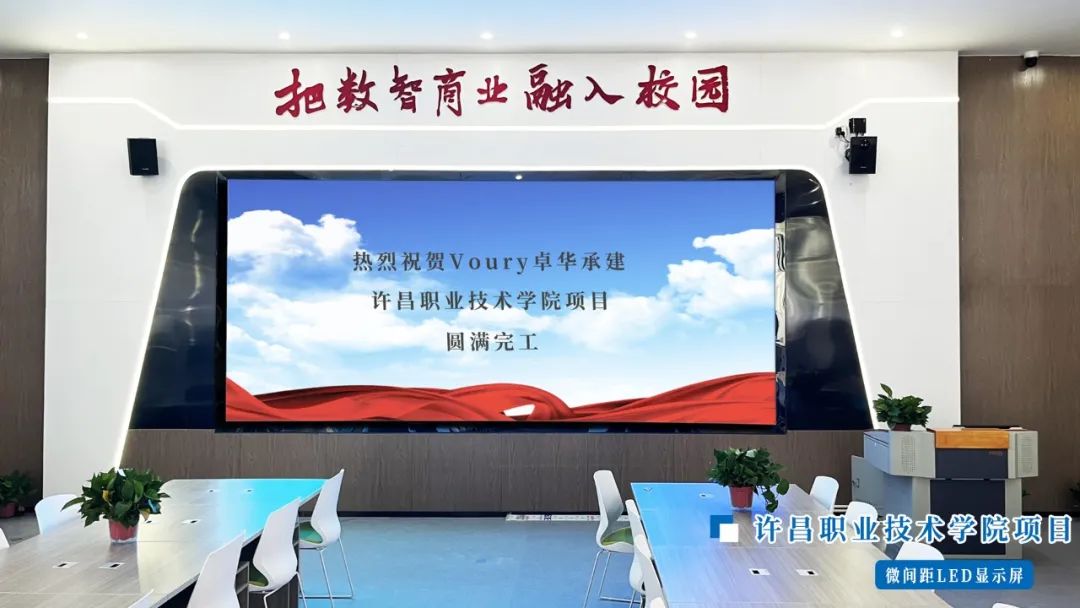 為助力院校專業群建設、打通產教融合新通道,Voury卓華為許昌職業技術學院打造了六套黑晶王系列微間距LED顯示屏,屏體總面積近100平米;此項目最突出的特點就是其整體色彩顯示效果好,采用RGB三基色成像技術,色域超廣,色彩更豐富,達到廣播級標準;利用先進的綠色還原及膚色還原功能,完全適應人眼對顏色的感知,為用戶帶來真實感官體驗。