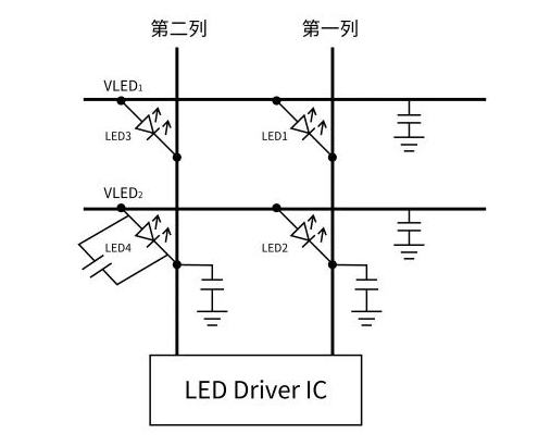 目前PM高掃描,多通道的小間距LED驅動方案仍然不能完美的解決暗亮、低灰不均勻、高對比下的耦合等問題。這些問題的產生,主要是受寄生電容的影響,在PCB設計的階段,可以做Layout線路調整降低寄生電容大小,同時像素間距越來越小,PCB線路越來越密集,寄生電容影響越明顯,目前看驅動方案很重要,同時PCB設計也不容忽視,見圖2。
