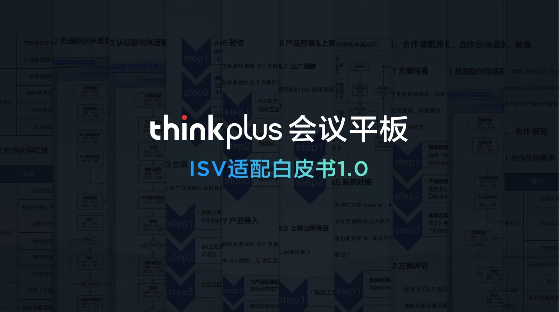 本次發布會,聯想除了推出全新產品,還正式對外發布《聯想thinkplus會議平板ISV適配白皮書1.0》,并宣布與ISV廠商深度合作的“領航者聯盟計劃”全面啟動,誠邀更多的ISV合作伙伴加入領航聯盟。