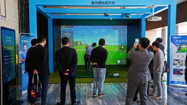 會場外走廊來賓休息區應用松下高清激光投影機PT-BMZ61C結合模擬高爾夫球專用設備搭建模擬高爾夫體驗區,獲得了不少參會來賓的稱贊,也是本次大會較為火熱的區域之一。