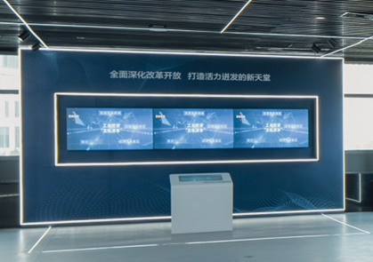 該展項(xiàng)采用L型屏聯(lián)動(dòng)觸摸查詢(xún)裝置開(kāi)啟連屏影音演繹,圍繞城西科創(chuàng)大走廊空間布局,逐次解析大走廊未來(lái)規(guī)劃,墻地聯(lián)動(dòng)立體展開(kāi)一幅大走廊未來(lái)藍(lán)圖畫(huà)卷。游客可以通過(guò)查詢(xún)裝置,了解大走廊的相關(guān)信息。
