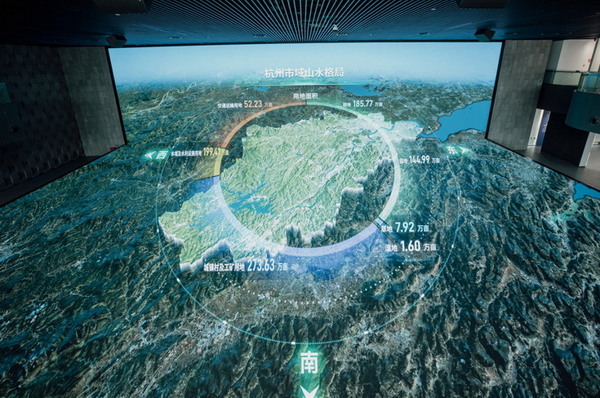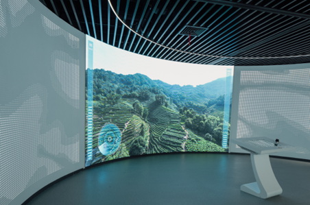 通過(guò)該展項(xiàng)可以看到杭州近年來(lái)堅(jiān)定踐行“兩山”理念,為統(tǒng)籌好生產(chǎn)、生活、生態(tài)三大空間布局做出的各項(xiàng)努力,新時(shí)代的美麗杭州也將逐步實(shí)現(xiàn)“人與自然和諧共生”的美好畫(huà)面。游客可以通過(guò)點(diǎn)觸選擇不同景點(diǎn),前方弧形大屏將360度全景呈現(xiàn),帶您領(lǐng)略杭州“山、水、人、城”三生融合的人間煙火氣。