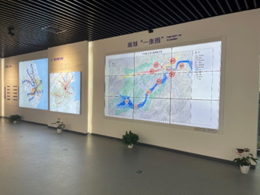 規(guī)劃一張圖互動(dòng)界面以“大幅規(guī)劃圖紙”作為展示核心,我們整合了相關(guān)規(guī)劃圖紙,借用雷達(dá)觸碰的手段進(jìn)行畫(huà)面切換,游客可以在這里近距離接觸、查詢(xún)有關(guān)規(guī)劃圖紙。