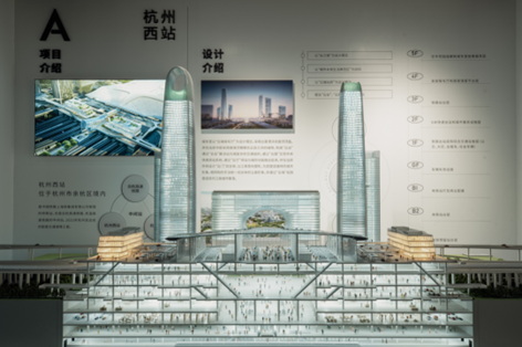 杭州近期重大工程模型裝置,以杭州西站為例。通過(guò)模型可以看到,杭州西站主體結(jié)構(gòu)分為地上六層、局部八層、地下二層,每一層都有其相應(yīng)功能。