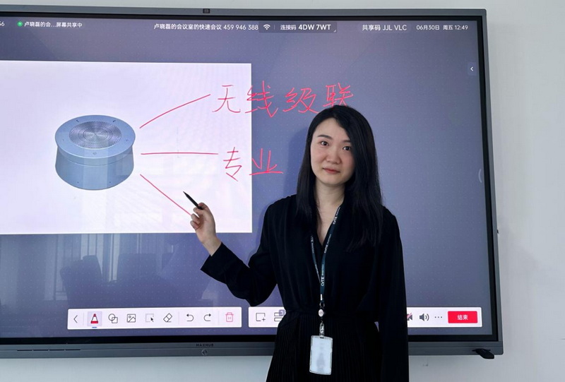 “每一位用戶都是我們最好的老師!焙鷭日f道。她印象最深的是,BM51第一版demo產品給到用戶試用時,有人反饋,遠程會議聽不清楚,有很大的環境噪音!暗谝环磻钱a品出了問題。”她立刻拉上團隊趕往現場了解情況,調研后卻發現,設備當時并沒有在工作,大家來開會時,都以為會議設備已經準備好了,沒有人去按BM51的開機鍵。