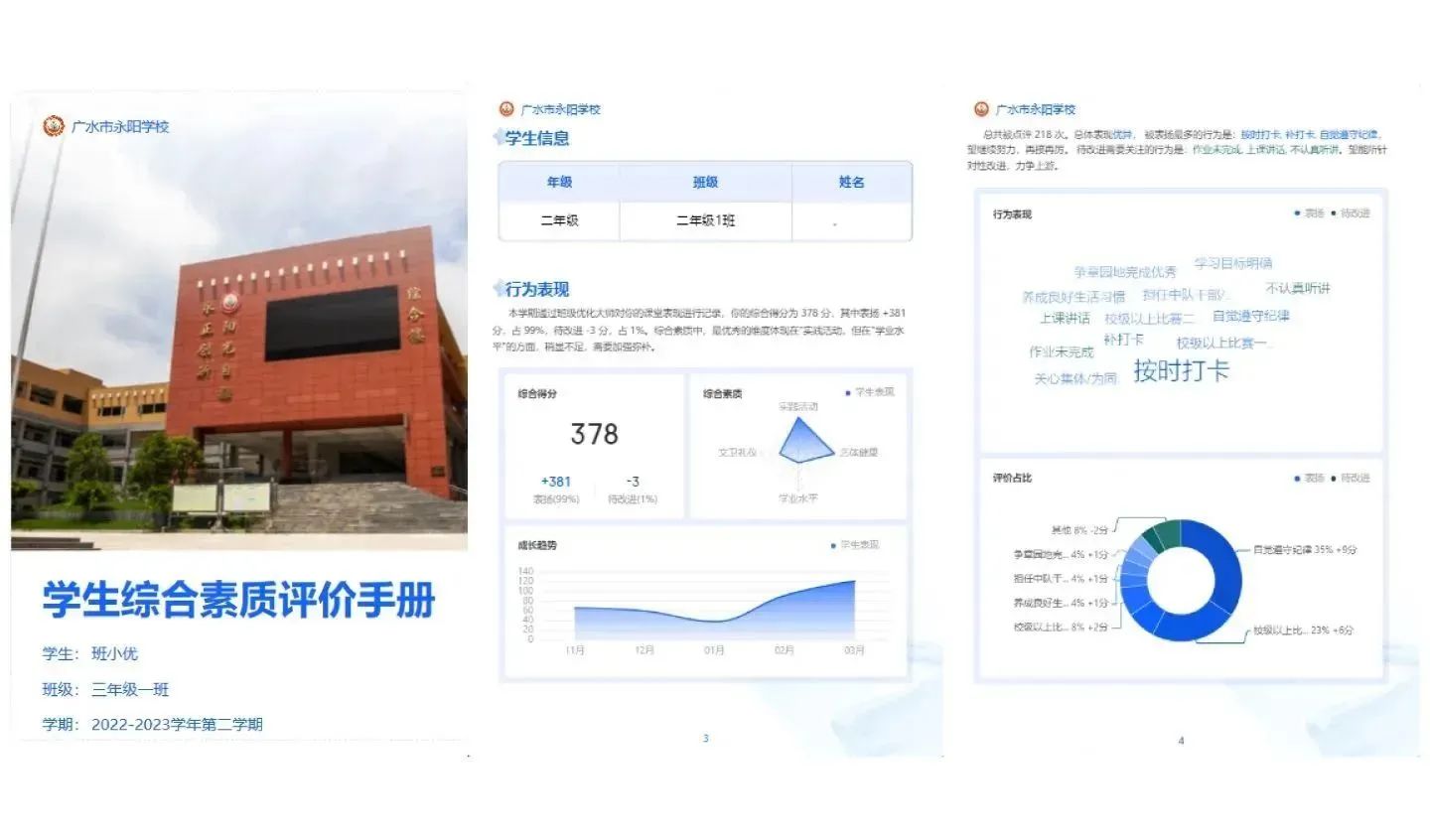 該功能可全方位記錄學校課堂表現、校內外實踐、校外表現等,學生表現也將自動同步家長,老師還可通過多種方式與家長溝通,共同引導學生健康成長。