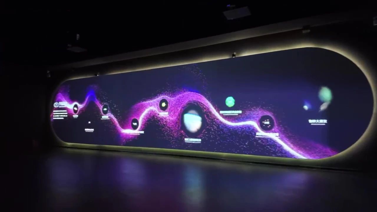 由弧形幕+Adonis系列激光投影機+短焦鏡頭打造的顯示方案,通過多臺投影機的畫面融合,形成有弧度的畫面,讓觀眾感受到一種立體的震撼效果。