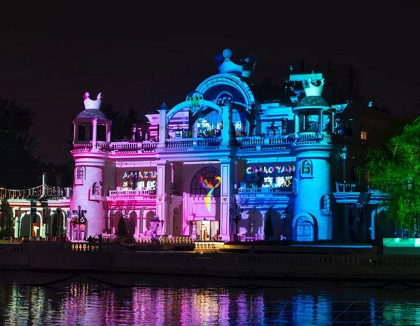 “MOLLY的城堡”是泡泡瑪特城市樂園的核心建筑,集主題展覽和互動體驗于一體,其華麗外觀與璀璨燈光更是樂園的“名片”。在燈光節期間,20臺巴可UDX-4K40投影機將城堡外立面變為光影舞臺。“童夢奇緣”光影秀每晚上演,講述了主人公“靚靚”串聯朝陽區地標景點的奇妙故事。泡泡瑪特Molly家族的精靈角色也在光影中栩栩如生,為觀眾帶來一場充滿童趣的視覺盛宴。