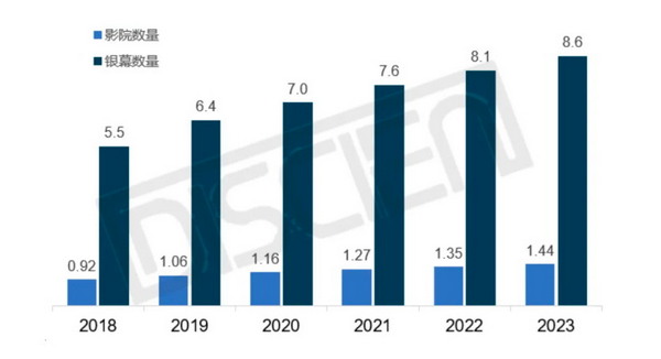 2018-2023中國電影院及影院銀幕數(shù)量(萬)