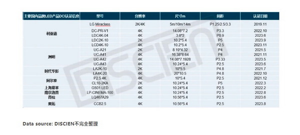 國內(nèi)品牌LED影院屏幕DCI認證情況整理
