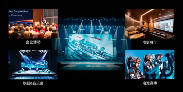 此外,LED屏幕讓電影院不再是一個黑色關(guān)燈的世界,為影院探索了更多商業(yè)模式可能性,如可在非觀影時間可引進劇場、會場等多元業(yè)態(tài),如影片發(fā)布會、電競比賽、賽事轉(zhuǎn)播、企業(yè)活動、音樂會直播等,成為一個多業(yè)態(tài)的復(fù)合商業(yè)體場景,以擴大影院創(chuàng)收機會。