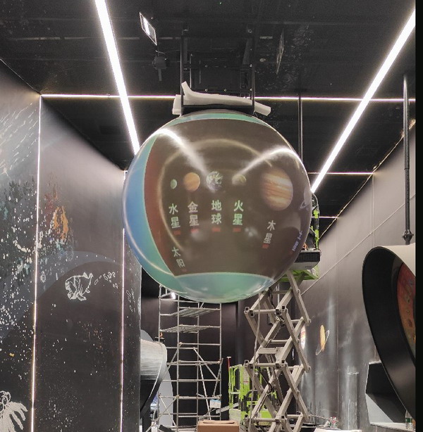 直徑2000mm吊頂內投球幕現場調試照片(科技館5F)