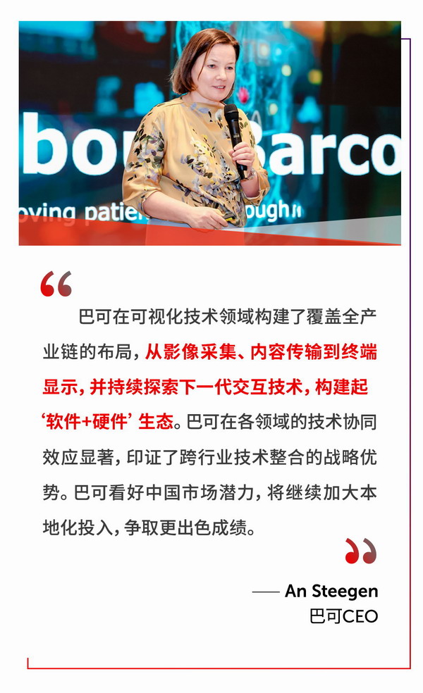 巴可診斷影像執行副總裁Dirk Feyants表示,巴可醫療始終以提升患者護理為核心目標,幫助醫生更精準診斷疾病。現在,巴可產品方案不僅應用于醫院各科室,還拓展至遠程診斷、家庭醫療等新興場景和生命科學研究領域。