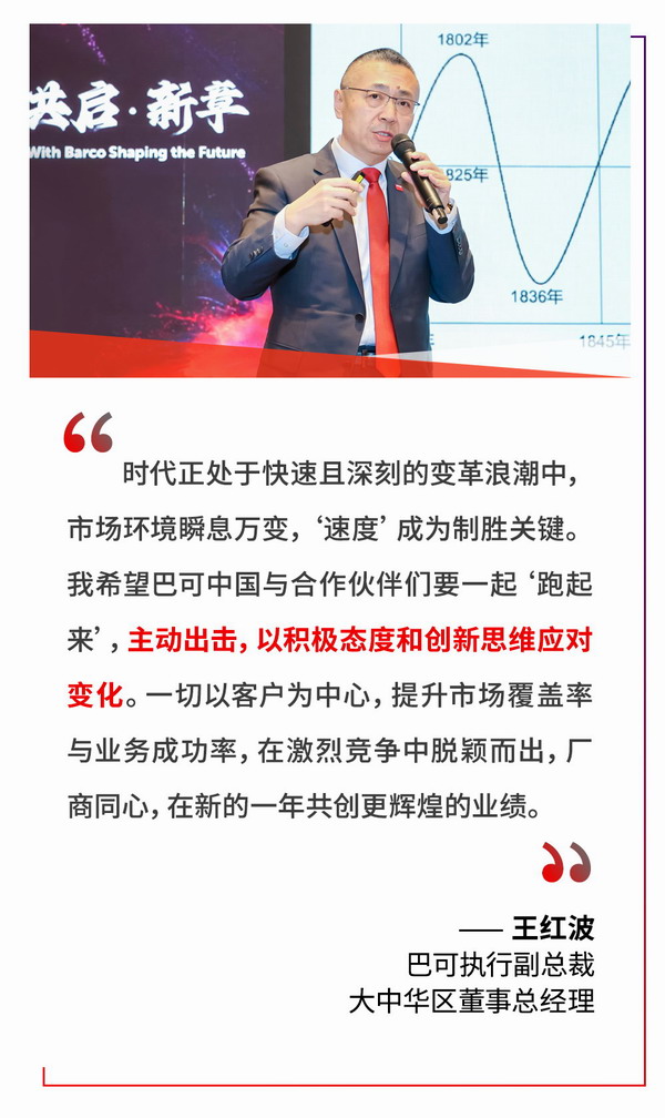 巴可執行副總裁、中國董事總經理王紅波作巴可中國策略報告,從時代背景、發展回顧及市場機遇等維度,深入剖析市場趨勢、產業現狀與用戶需求,闡述巴可中國的發展規劃。