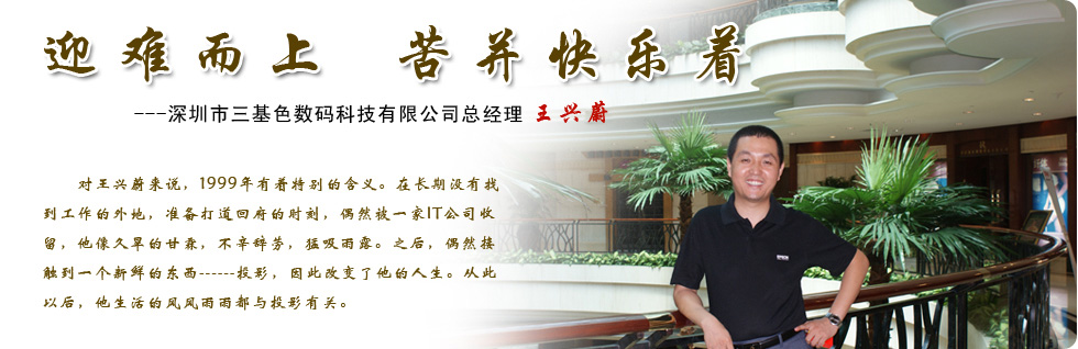 一次偶然的機(jī)會(huì)接觸到了國(guó)產(chǎn)投影機(jī),當(dāng)時(shí)該品牌正在做前期籌建研發(fā),市場(chǎng)推廣等,我進(jìn)入了該公司(目前該公司已與神州數(shù)碼簽約合作),在那里我全面的了解了投影的原理,技術(shù),生產(chǎn)組裝流水,客戶需求方向等等知識(shí),真是讓我大開(kāi)眼界! 2002年,由于了解到目前投影行業(yè)基本被日系品牌所壟斷,國(guó)產(chǎn)投影很艱難的在起步推廣,我想去看看日系投影在國(guó)內(nèi)是如何銷(xiāo)售推廣的,于是應(yīng)聘到了當(dāng)時(shí)的日系龍頭老大的中國(guó)區(qū)總代深圳分公司,在那里工作學(xué)習(xí)了兩年多,積累和豐富了我的投影銷(xiāo)售經(jīng)驗(yàn),看到了投影未來(lái)的魅力所在。 不安分的我,在2004年追隨我的投影部門(mén)經(jīng)理,走上學(xué)習(xí)創(chuàng)業(yè)的第一步,在兩年的開(kāi)拓學(xué)習(xí)中,我逐漸的成長(zhǎng)成熟,結(jié)實(shí)了很多投影行業(yè)的朋友!在我看來(lái),投影行業(yè)在這一二年是發(fā)展速度最為迅猛的,有越來(lái)越多的人開(kāi)始從事投影行業(yè),投影生意也是步步攀升! |