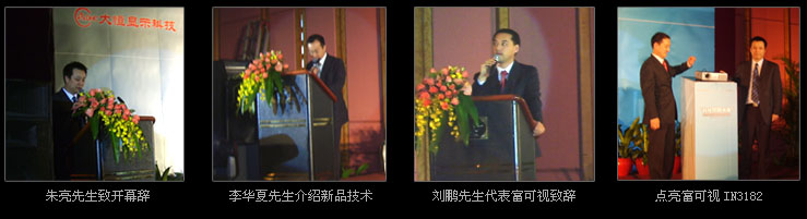 2008年11月13日,由美國專業投影機廠商富可視攜手大恒顯示科技共同舉辦的“科技照亮未來”—富可視投影機新品發布會在廣州亞洲國際大酒店隆重舉行。美國富可視公司中國區產品經理劉鵬先生、大恒顯示科技事業部總經理朱亮先生以及李華夏先生等出席了會場并作了重要講話。業內外人士、行業媒體等應邀參加。