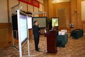 緊隨其后,由三維事業部總監楊世滿先生介紹三維的產品及SNPIC50R無線控制互動白板系統、3V豪華電動幕等。