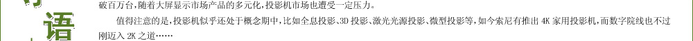 JAPAN)上,世界首臺(tái)4K超高清分辨率家用投影機(jī)—索尼VPL-VW1000ES正式亮相 ,這是顯示領(lǐng)域在3D技術(shù)民用化之后,又一個(gè)令人興奮與期待的看點(diǎn)。
