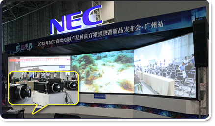 2013年8月2日,“影炫視界——2013年NEC高端投影產品解決方案巡展暨新品發布會廣州站”在廣東科學中心3樓E區隆重舉辦。作為國際顯示巨擘NEC,本次攜手其投影機總代理東方中原帶來一場影炫視界的完美方案展,同時,并借此機會發布了多款高端工程投影機新品。本次廣州站巡展主要展示的包括:NEC高端工程投影機、東方中原液晶拼接單元、松下RAMSA音響系統、OS投影幕等設備,打造出多套適用于多種領域的顯示系統,包括:4D影院、曲面投影、無線網絡會議室、微型立體投影、液晶拼接顯示墻、虛擬仿真、互動教學體驗區、屏幕沙盤等解決方案 ,為現場觀眾帶來震撼的視覺體驗,展現了東方中原在顯示行業出色的產品功能及解決方案提供能力。 |