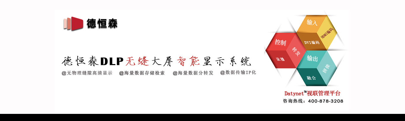 德恒森公司主要系統產品有:DATYNET無縫隙智能數字高清大屏系統系列、數字高清視頻監控產品系列以及先進的多源高并發分布式視聯管理方案。