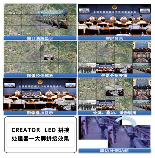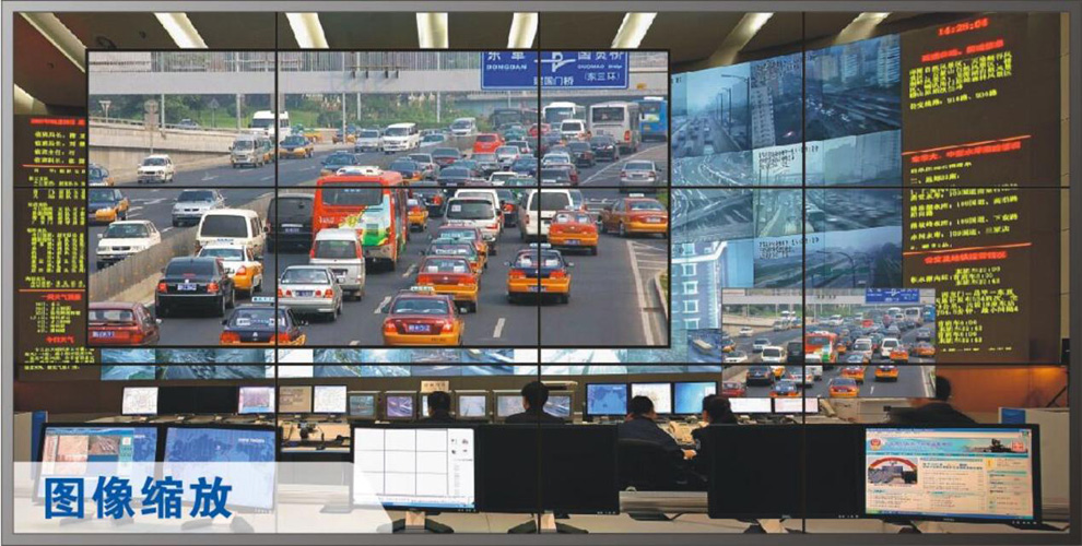 顯示區采用LED拼接組成拼接墻墻,用于重要顯示重要的視頻畫面,以便現場所有人員一起觀看和分析,可以采用輸出節點內置的電視墻功能,也可以用專門的處理器與輸出節點對接。業務系統操作人員可將其權限范圍內的視頻源推送到大屏,而管理員則可將任意視頻源推送到大屏。